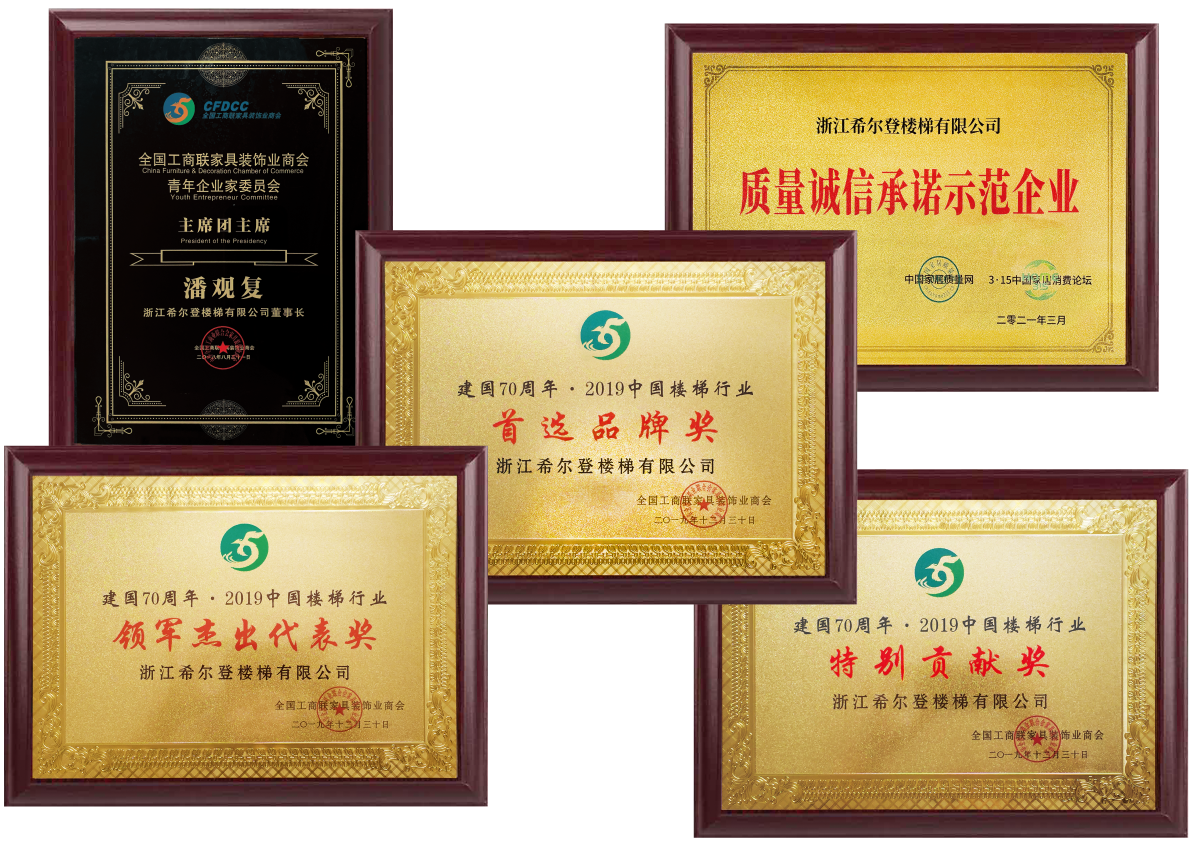 在不斷提升希爾登品牌和企業(yè)實(shí)力的同時(shí),希爾登一直熱心參與樓梯行業(yè)的健康發(fā)展;參與創(chuàng)立全國工商聯(lián)樓梯專委會并被推選為中國樓梯品牌聯(lián)盟執(zhí)行主席和樓梯專委會執(zhí)行會長;憑借在行業(yè)內(nèi)的專業(yè)地位,希爾登參與了《木質(zhì)樓梯》,《木質(zhì)樓梯安裝驗(yàn)收和使用規(guī)范》,《住宅內(nèi)用樓梯》,《建筑用玻璃與金屬護(hù)欄》四個(gè)國家和行業(yè)標(biāo)準(zhǔn)的起草工作。先后榮獲“中國樓梯十大品牌”、“金木樓梯領(lǐng)軍品牌”、“中國泛家居發(fā)展中企業(yè)500強(qiáng)”、“中國家裝行業(yè)金鉆獎(jiǎng)”、“金屬木質(zhì)樓梯一級資質(zhì)”等二十多個(gè)榮譽(yù)和稱號。我們幾乎參與和見證中國樓梯發(fā)展歷程中的所有重大事件。希爾登過去,現(xiàn)在和未來都是中國樓梯的標(biāo)桿企業(yè)。
